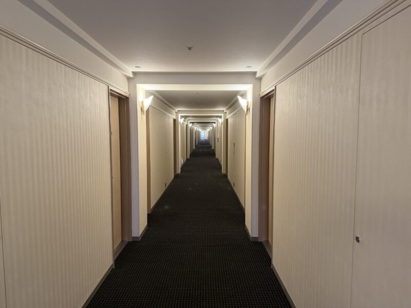 ホテルの建物自体が横に長~い作りなので、廊下も一直線です。