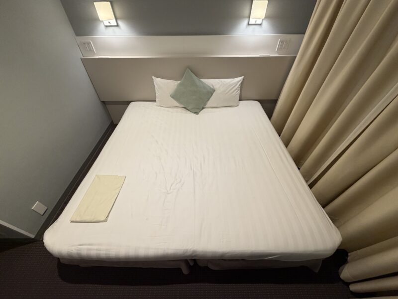 ベッドはシングルを2台引っ付けて1つになっています。