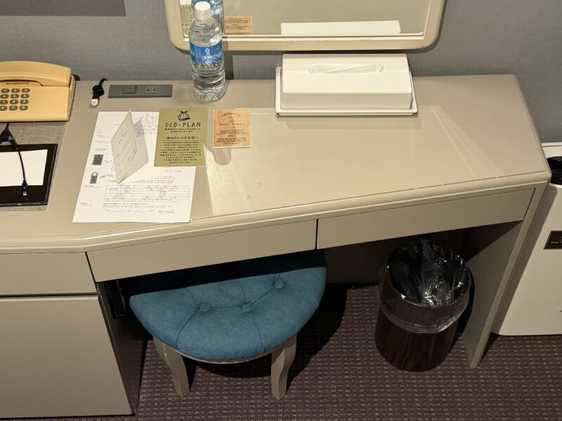 デスク周りの備品に関しては、ビジネスホテルと同等レベル。