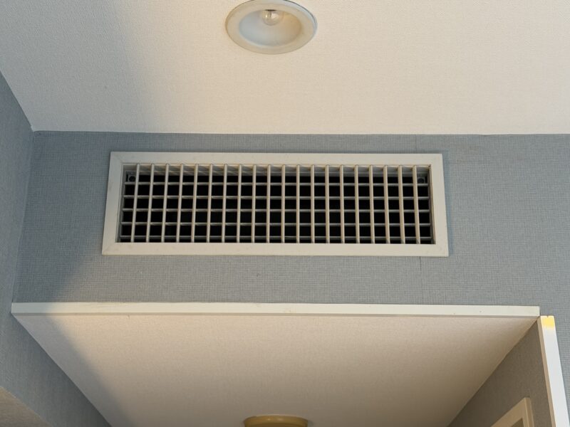 部屋のエアコンは業務用タイプ。