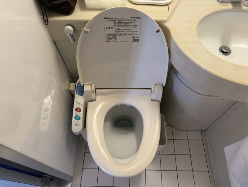 トイレは温水洗浄便座付きで、National製のウォシュレット「DL-SV10-CP」。