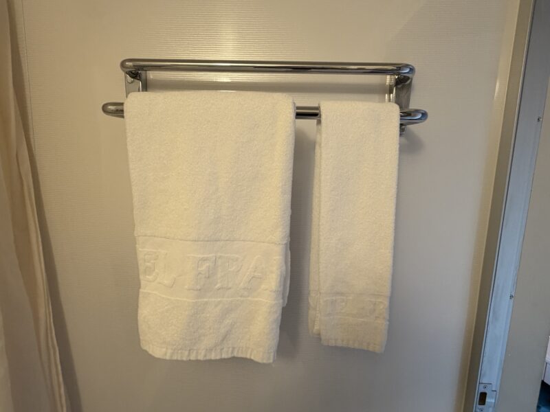 タオルはフェイスタオルとバスタオルがそれぞれ1枚ずつ。