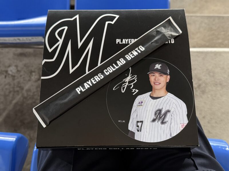 この日の球場飯は、マリーンズの選手コラボ弁当「PLAYERS COLLAB BENTO」を購入しました。