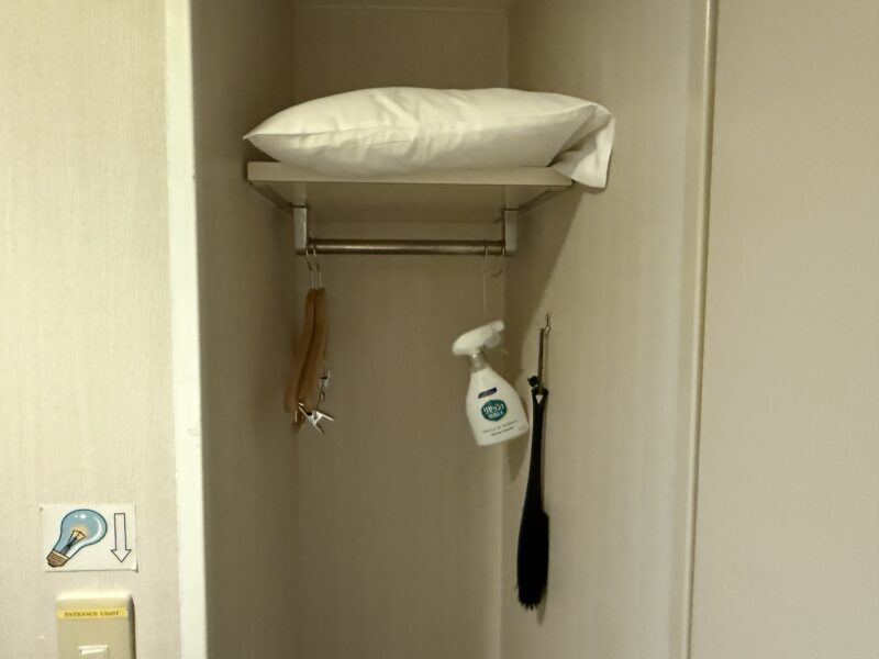 ハンガーが2本、消臭スプレー、靴ベラ、予備の枕がありました。