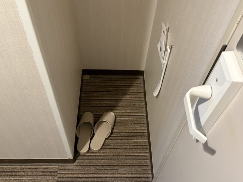 下のスペースに室内用のスリッパ。