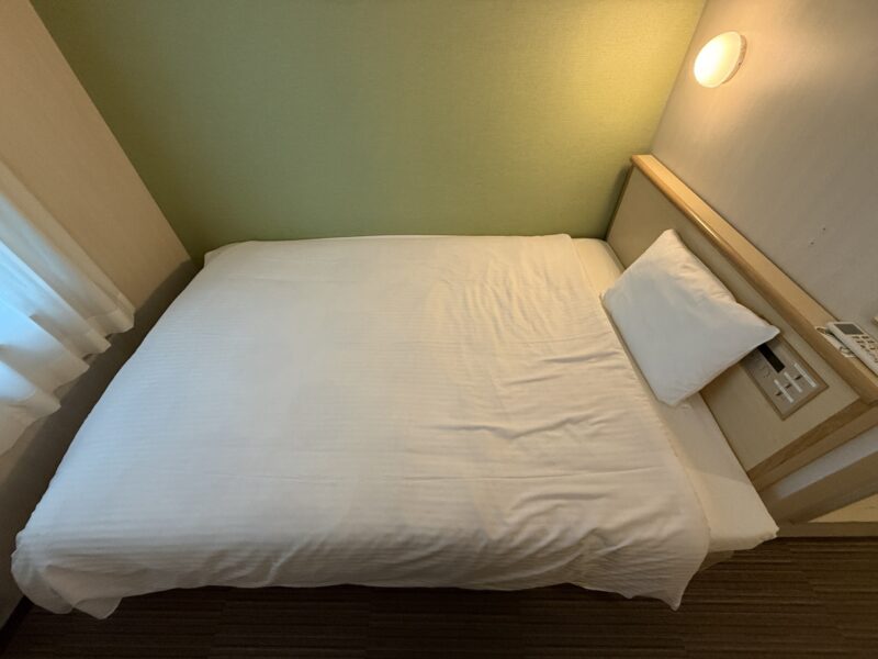 ベッドはセミダブルとやや広めで、今回3泊しましたが、寝心地が良く疲れが残る感覚はなかったです。
