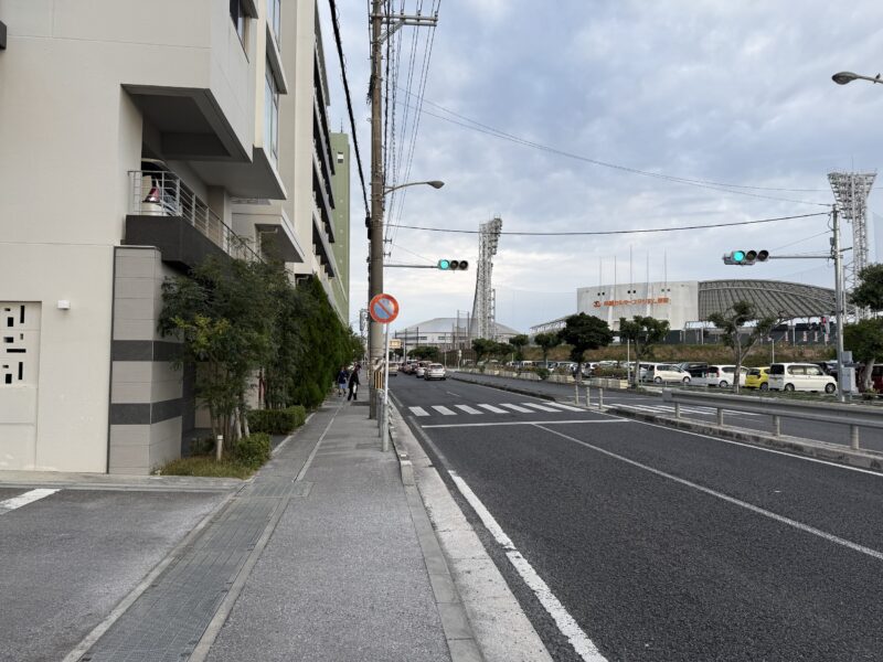 スタジアムが見えていますが、この大通りを進みます。