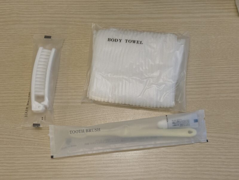 歯ブラシセットやヘアーブラシだけでなく、ボディタオルもあったのでサービス良いです。