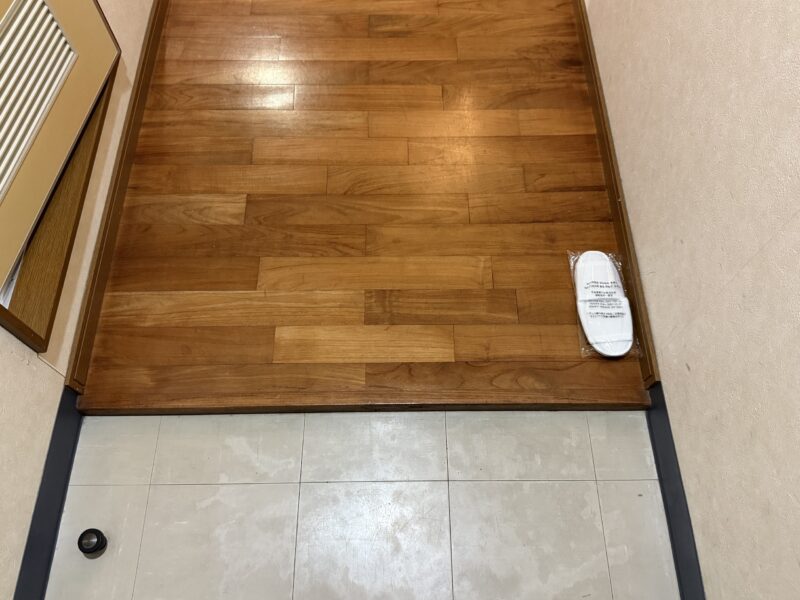 入り口は一般住宅のように段差があり、靴を脱ぐタイプで使い捨てスリッパが置かれています。