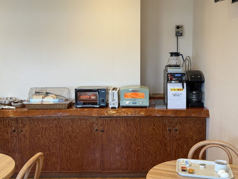 パンは食パンとロールパンの2種類が用意されていて、トースターが置かれているため、好みの焼き加減にして食べられます。