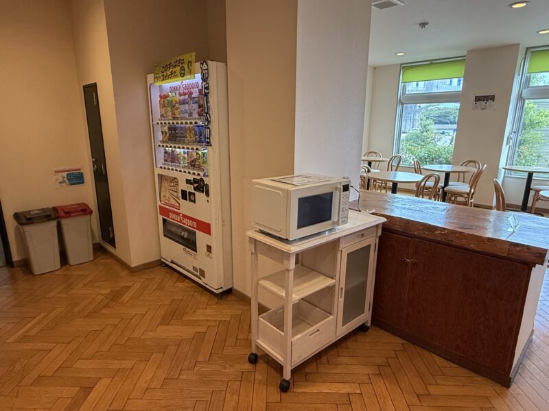 1階にはフロントのほか、自動販売機と電子レンジが設置されています。