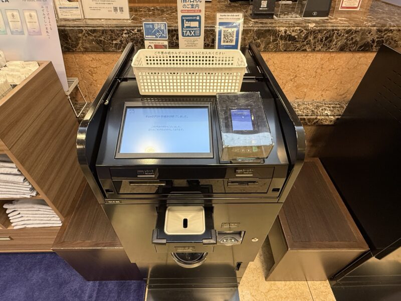 東横INNのチェックイン、チェックアウトはこちらの機械で手続きします。