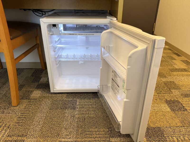 小型冷蔵庫は東芝製で中は何も入っていませんでした。