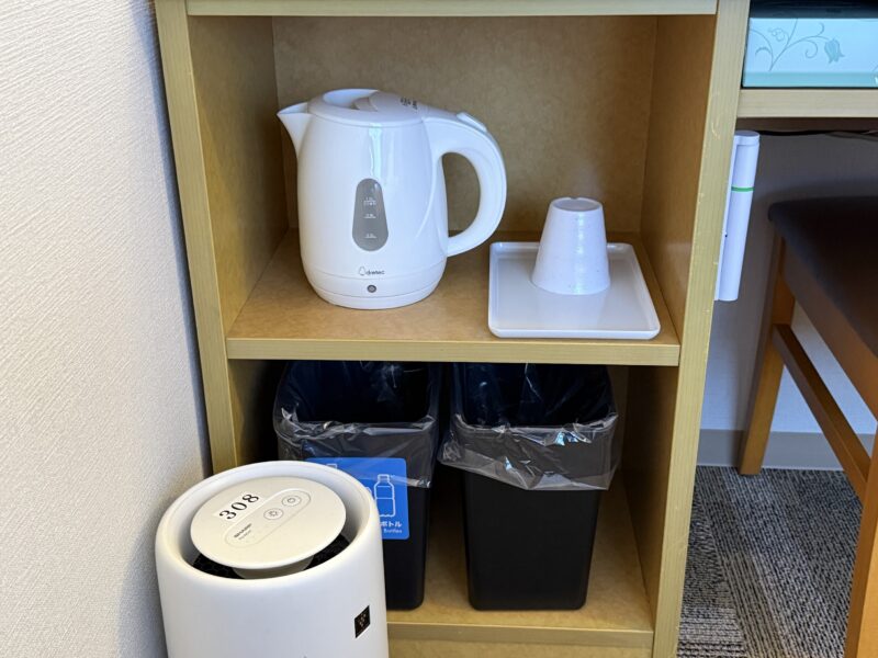 テレビ、冷蔵庫、ヘアードライヤー、湯沸かしケトル、空気清浄機が備えられていて、どれも使いやすい配置でしたので、滞在中に不便を感じませんでした。