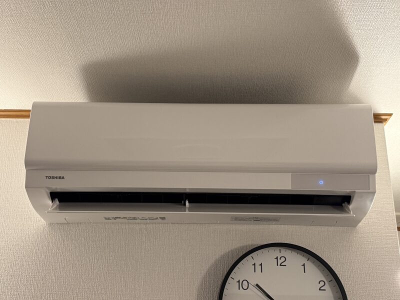 エアコンは2025年製造の東芝製 RAS-U221Mと最新モデルでしたので、内部のカビもなく綺麗。