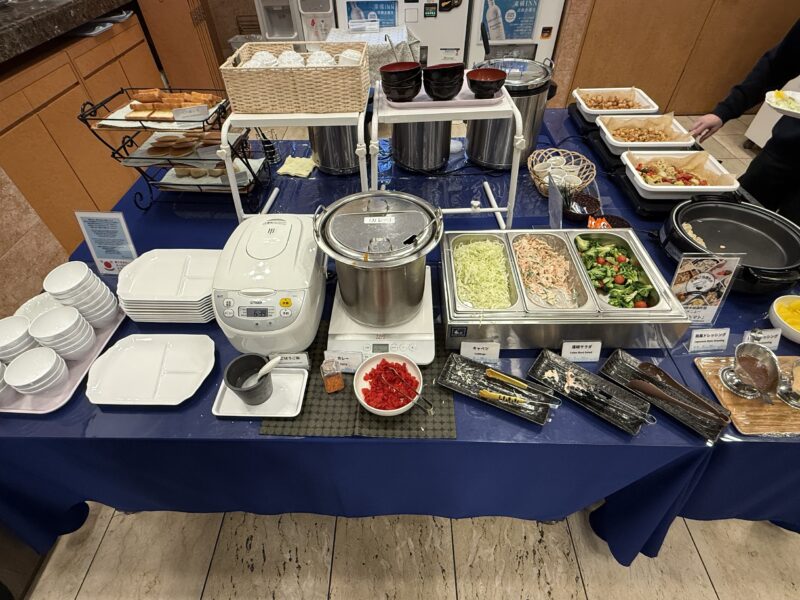 料理の内容は、東横INNらしいシンプルで実用的な構成でした。