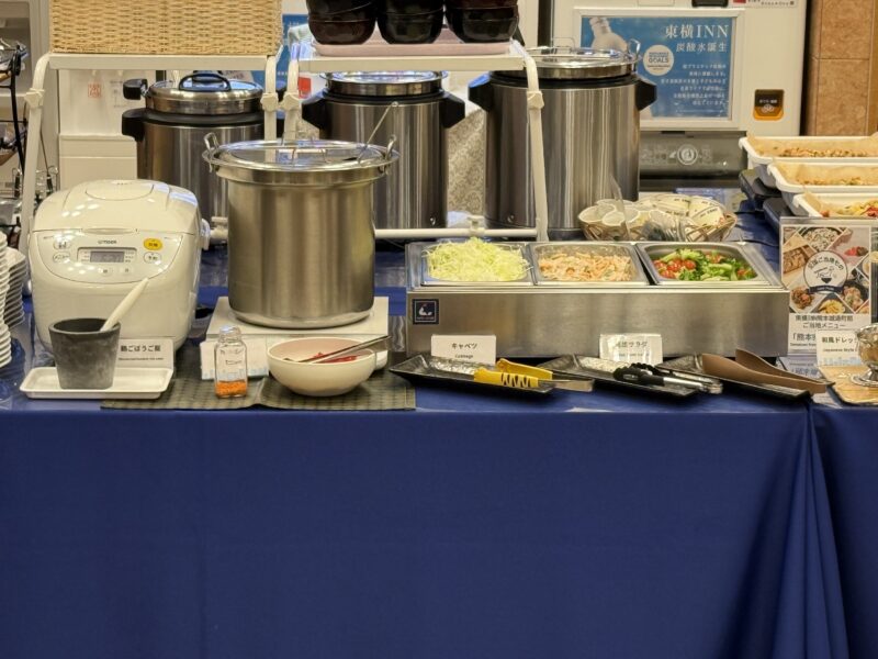 東横INN熊本城通町筋の朝食は、宿泊者無料で利用できるバイキング形式です。