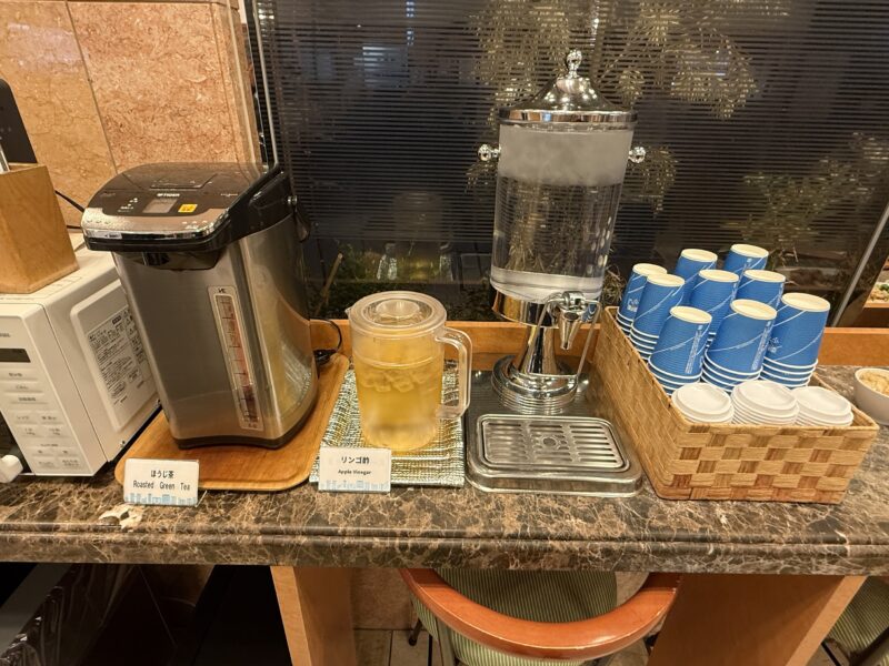 ドリンクは朝食限定のリンゴ酢と温かいほうじ茶も提供されました。