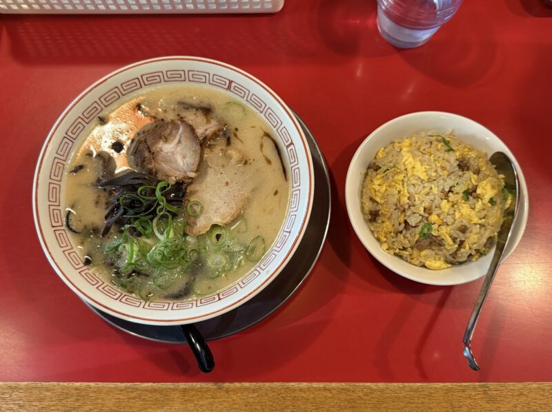 注文したのは熊本ラーメン(650円)とチャーハン(400円)のセット。