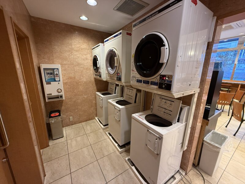 ロビーの奥にはランドリー設備もあり、長期滞在や旅先で洗濯したいときに役立ちます。