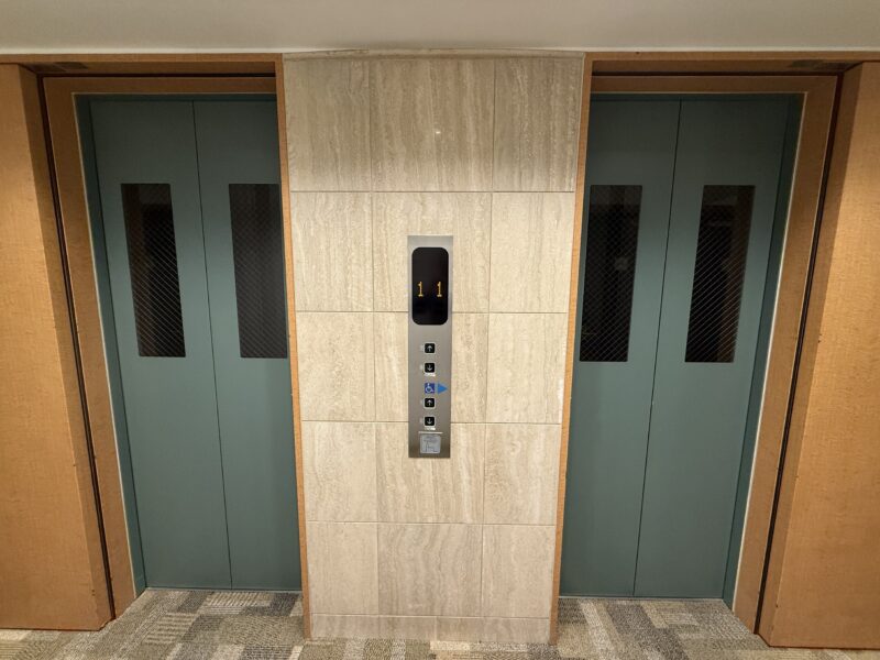 エレベーターは2基あり、混雑しやすい時間帯でも待ち時間は短めでした。