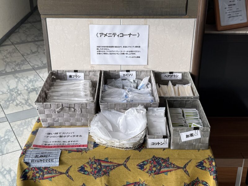 アメニティはフロント横の「アメニティーコーナー」から持っていくタイプ。