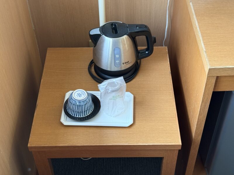 電気ケトル、湯飲み、グラスも備え付けられており、滞在中に不便は感じません。