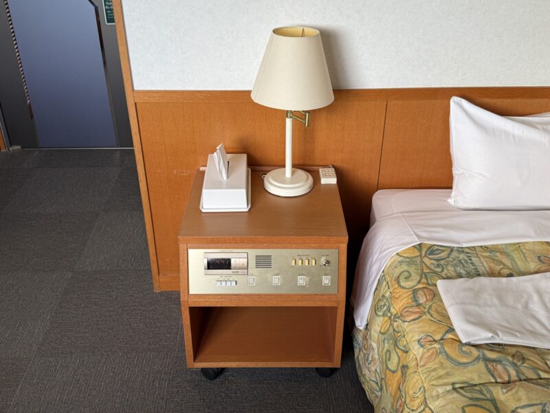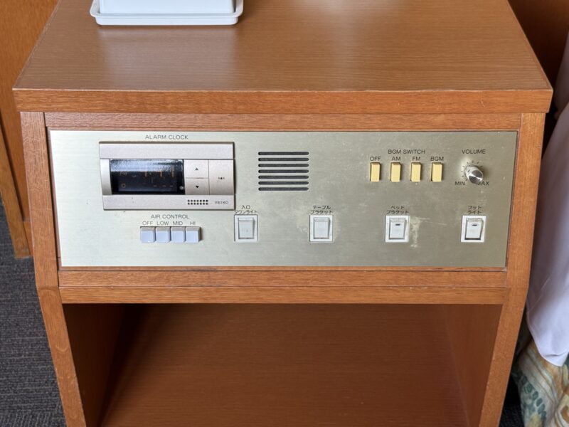レトロ感満載ですが、アラームや電気スイッチもベッドサイドで操作できます。