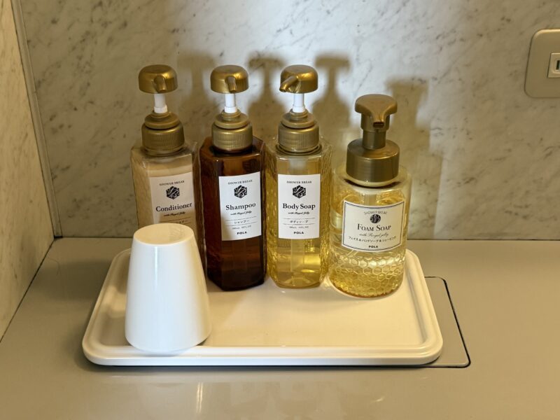 アメニティはシャンプー、コンディショナー、ボディソープ、フェイス&ハンドソープとPOLA製品で統一されています。