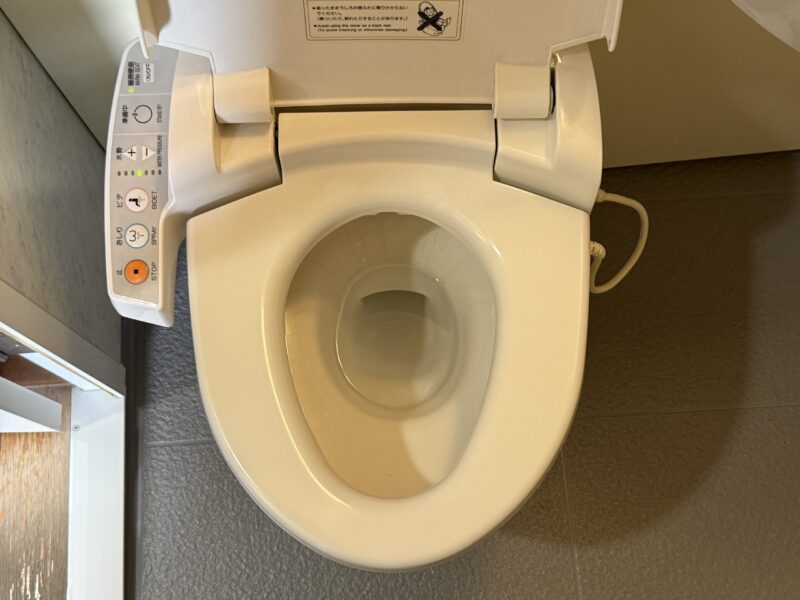 トイレとウォシュレットは袖リモコンタイプの古い機種。