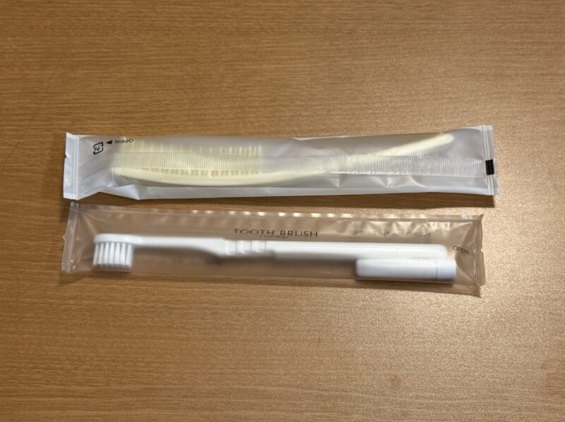 アメニティ(歯ブラシの質は普通。ボディタオルも貰える。)