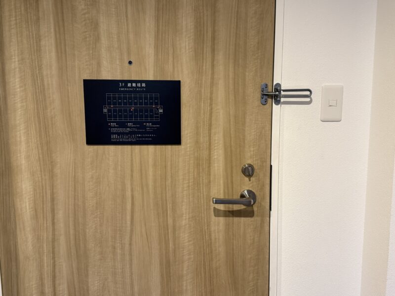 ドアの裏側には避難経路の案内図。