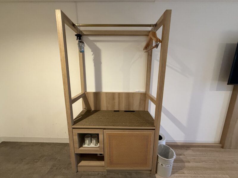 客室には扉のないオープンクローゼットが設置されていました。