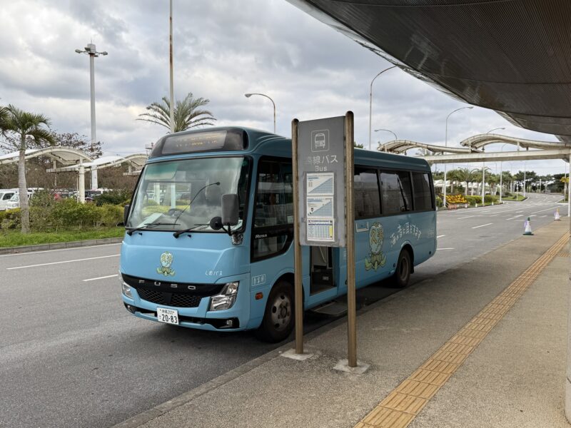 町営バスは空港から終点の久米アイランドホテルまで運行されており、片道500円でクレジットカードとカードのタッチ決済が使えるため便利です。