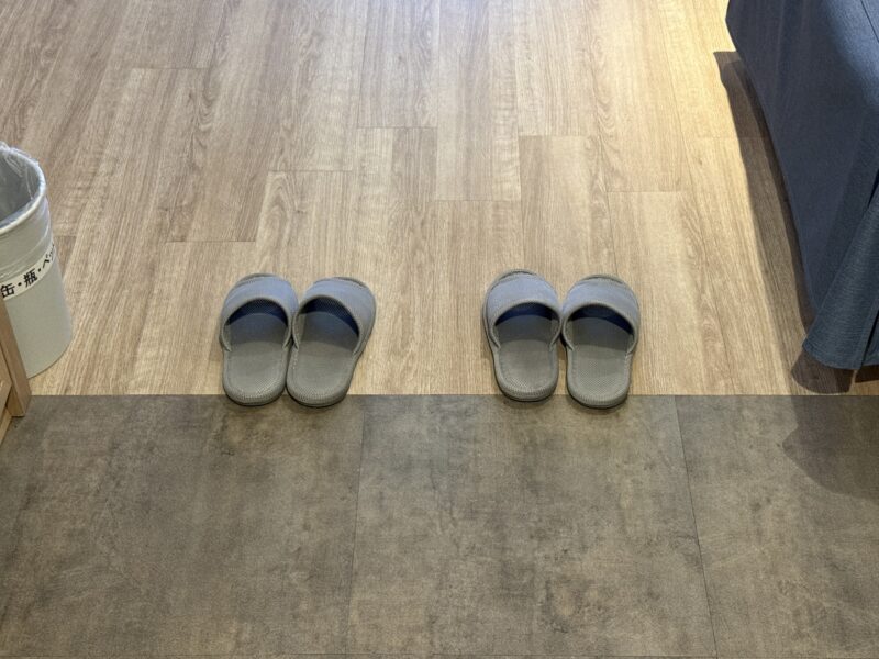 室内用スリッパも用意されていまが、床はフローリング調のため素足でも快適。
