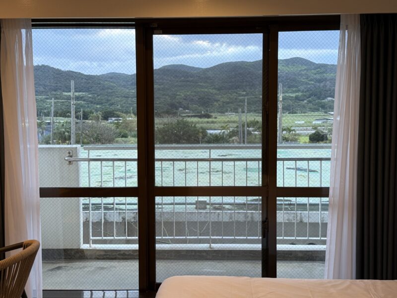 客室の窓からは、久米島ののどかな景色が広がります。