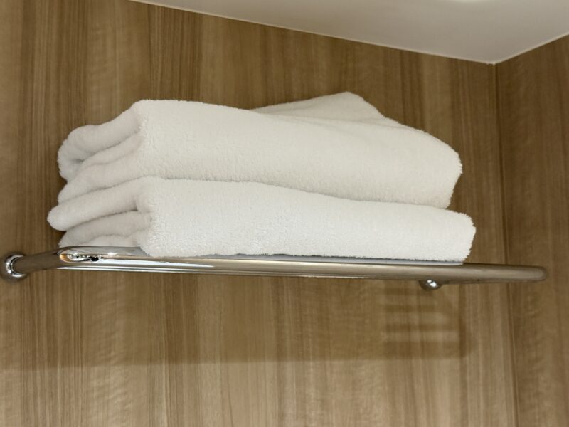 タオルはフェイスタオルが2枚用意されていて、当ブログで紹介するビジネスホテルに置かれている物よりも清潔感があり、厚みも十分。
