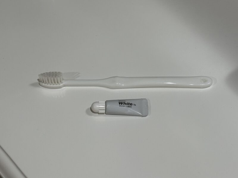 フロント横で取ってきた歯ブラシセットは一般的なビジネスホテルと同じレベルの物でした。