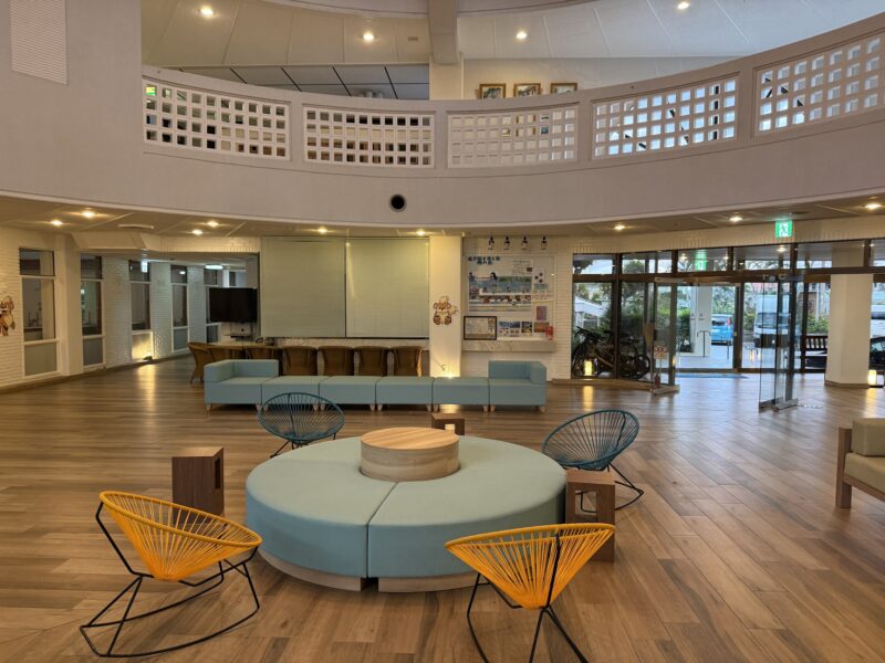 館内は南国リゾートらしい開放的な造りですが、いわゆる大型リゾートのような華やかな共用施設が並ぶタイプではなく、滞在の実用性を重視した構成です。