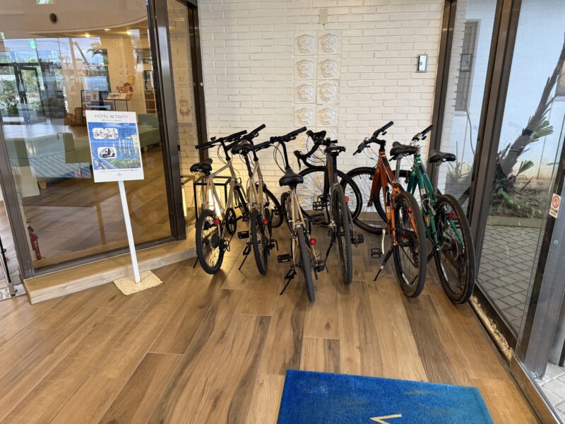 入り口には自転車が複数台置かれており、有料でレンタサイクルを楽しめます。